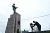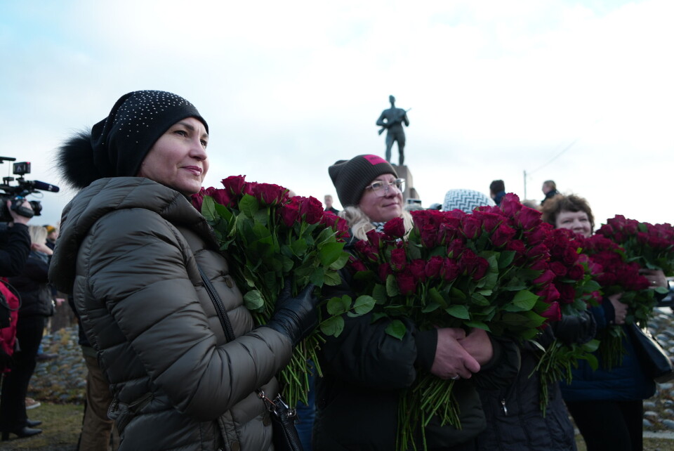 Konygin's two wreaths were soon surrounded by hundreds of red roses laid down by a group of ladies from the Russian diaspora in Kirkenes.