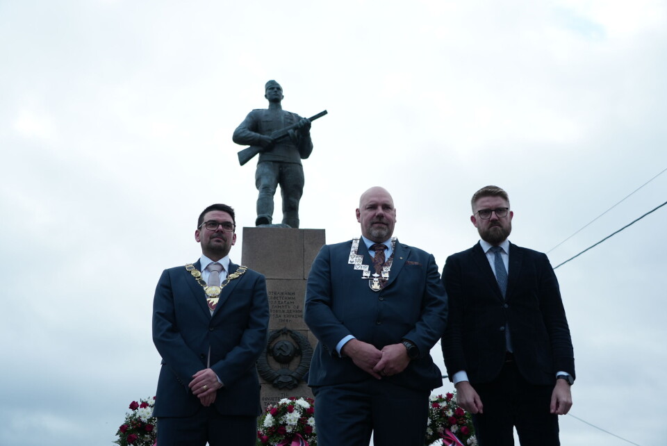 In Kirkenes, the woman laid a wreath at the monument with wordings from Murmansk veterans, commemorating the Red Army's liberation of eastern-Finnmark. The text on the wreath did not detail which veteran group in Murmansk the regards came from.